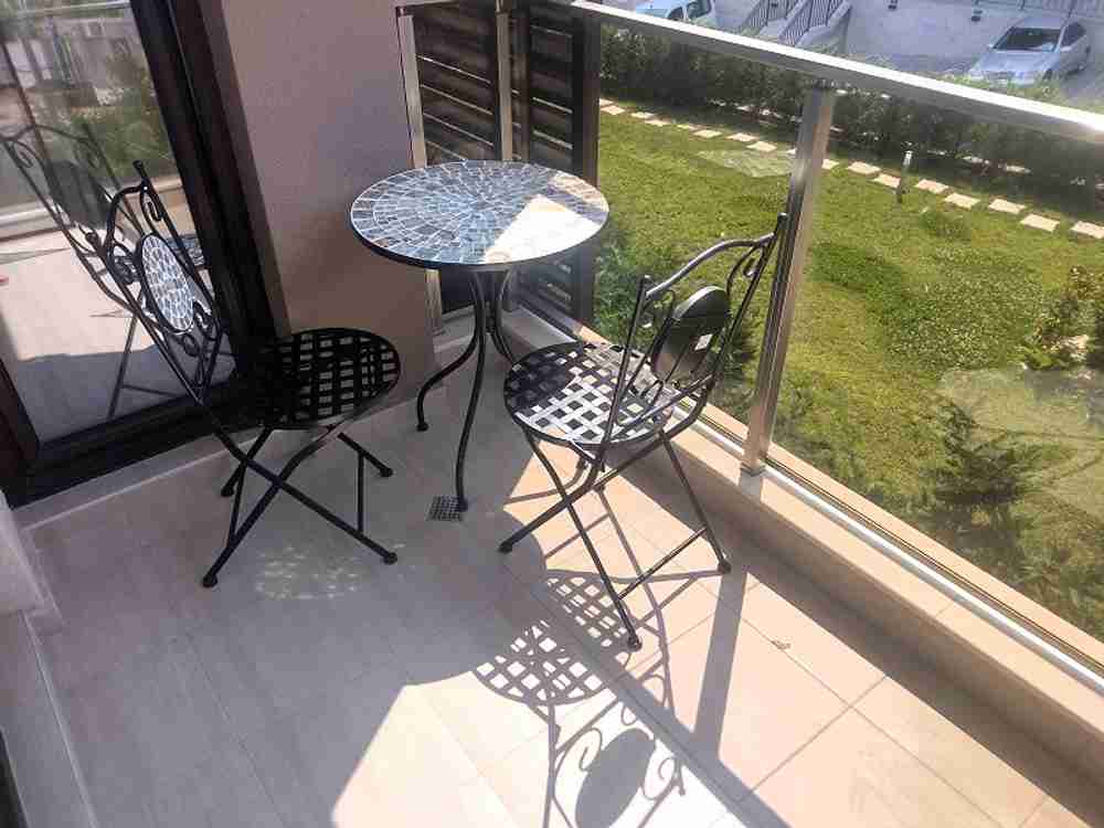 Апартаментът се състои от: Дневна с кухня, обзаведена с всички необходими електроуреди; Дневен тракт, обзаведен с мека мебел /разтегателен диван/, TV секция, холна масичка, телевизор, трапезна маса с комплект столове; Тераса; Спалня, обзаведена с голямо двойно легло, гардероб; Баня с душ кабина и пералня; Коридор, оборудван с комплект мебели, огледало и закачалка; Тераса; Парко-място в подземен паркинг на сградата или открито парко място!