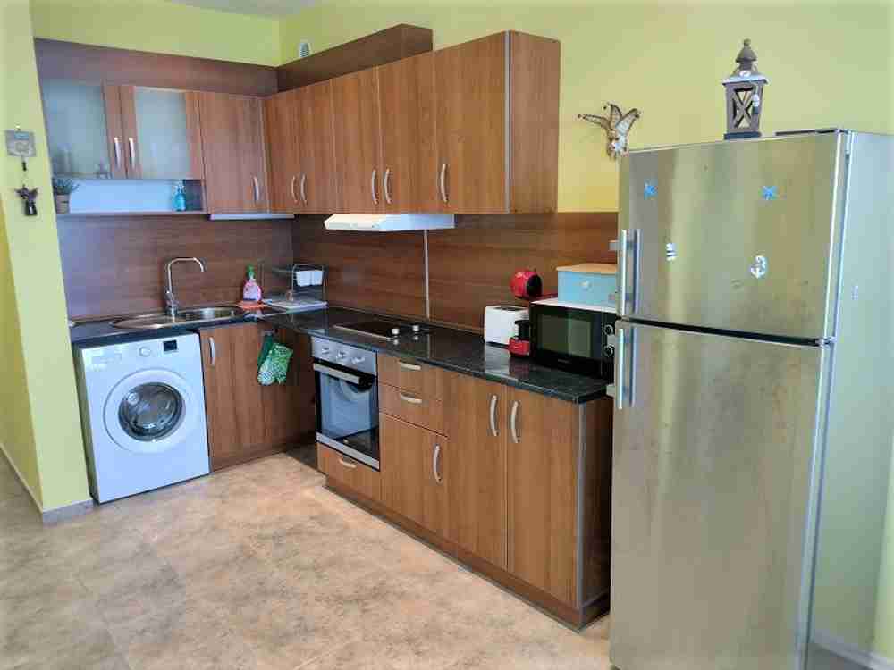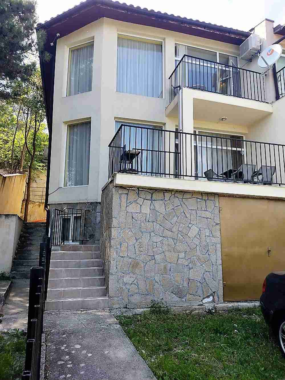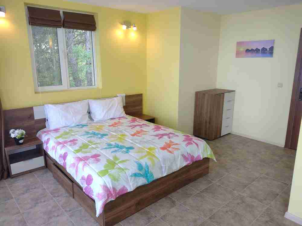 На първи етаж е разположена голяма спалня за настаняване на 2 човека, обзаведена с двойно легло, скрин, телевизор и самостоятелна баня с тоалет. Дневният тракт и кухнята са разделени на кътове - мека мебел, трапезария и кухня. Кухнята е напълно оборудвана с всички необходими удобства и ел. уреди – фурна, котлони, микровълнова печка, кафе-машина, тостер, кана за вода, хладилник, пералня, аспиратор, посуда и прибори. Дневната зона е обзаведена с разтегателен диван, интериорна масичка и телевизор. На същото ниво е разположена спалня с две единични легла, гардероб, дъска за гладене и ютия. Вътрешното стълбище отвежда към трети етаж с 2 спални. Голямата спалня разполага с двойно легло, скрин, телевизор, климатик, самостоятелен санитерен възел и панорамна тераса. Другата спалня е обзаведена с две единични легла, гардероб и отново отделна баня с тоалетна. Барбекюто и нескриваемата гледка ще допринесат за незабравимите моменти, които бихте могли да изживеете на това спокойно и отпускащо място.
